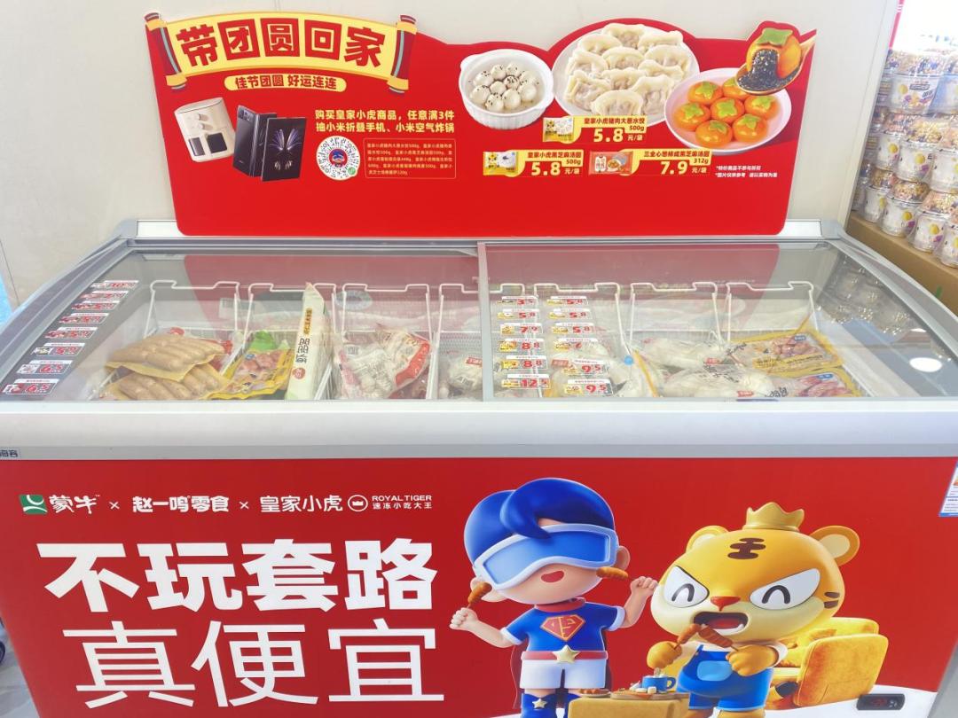 比如,蒙牛去年跨界冻品推出近百款SKU,不仅有源自锡林郭勒的熊猫羊肉冷冰器为核心亮点,辅以深海精捕的海鲜珍馐的海鲜水饺、甄选进口的顶级牛排,还有与三全食品合作的专属订制品等,品类丰富,新意十足。