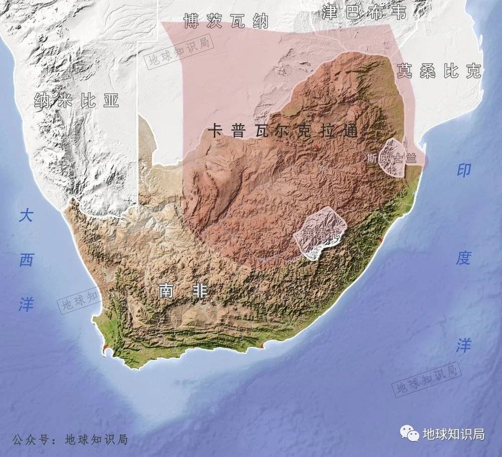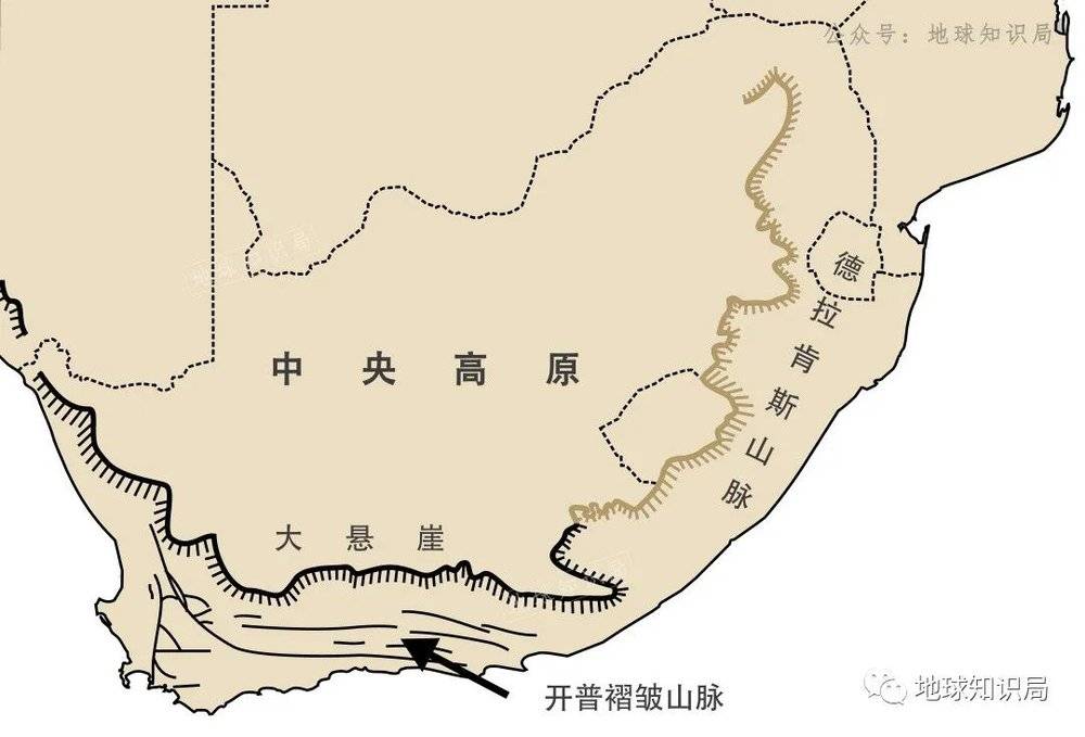 自元古宙(距今25.0亿年—8.0亿年)到古生代(约5.7亿年至2.3亿年前),随着板块漂移,卡普瓦尔克拉通与其他的克拉通之间多次发生碰撞、拼贴,形成了南非北部和南部沿海的一系列山地。
