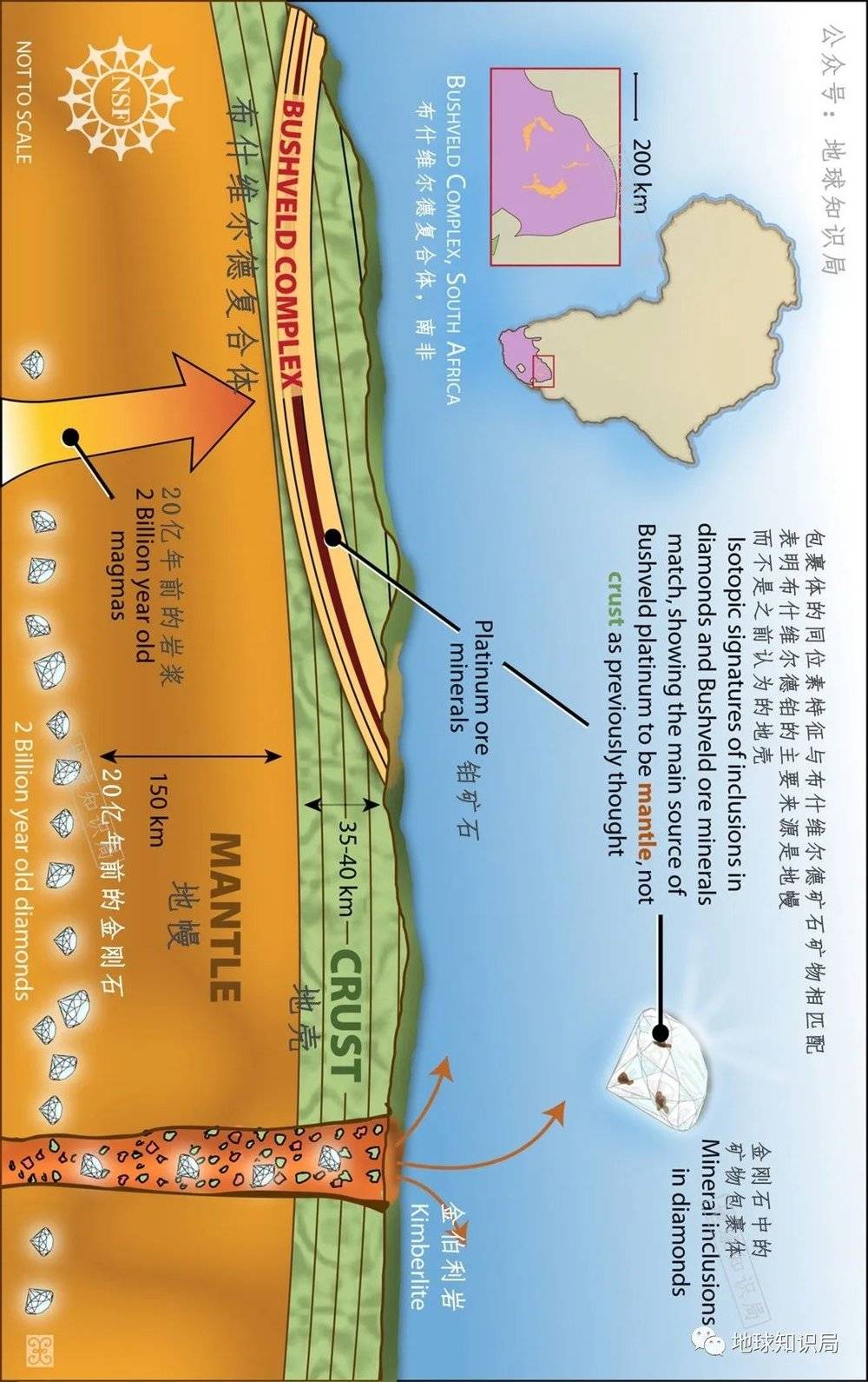 布什维尔德岩体所在及其生成示意(横屏 图:NSF)▼