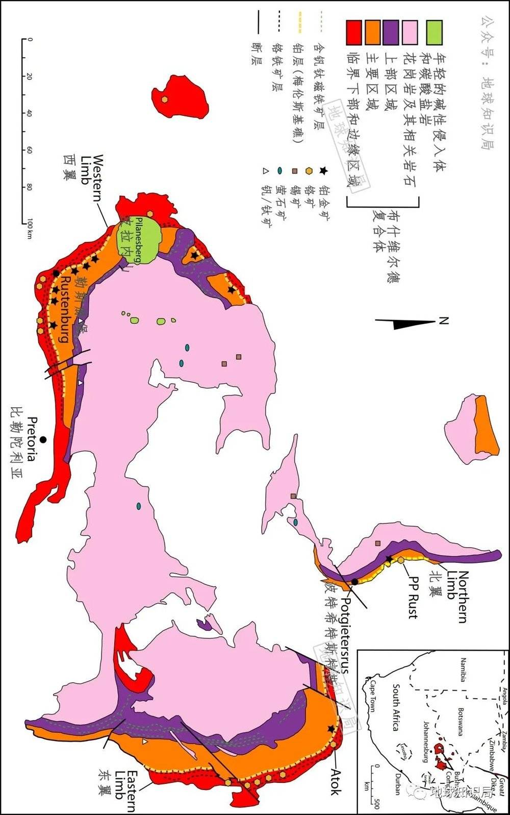 布什维尔德岩体及其矿藏分布(横屏 图:wiki)▼