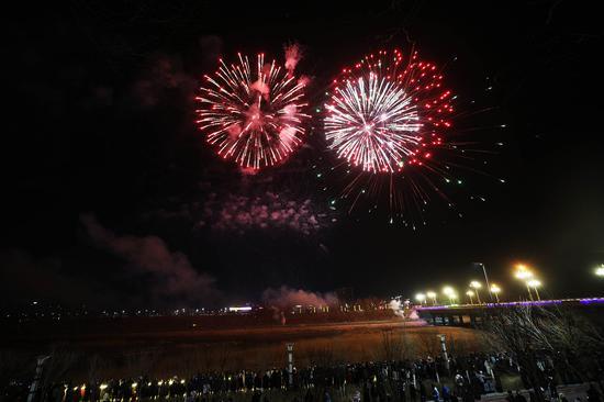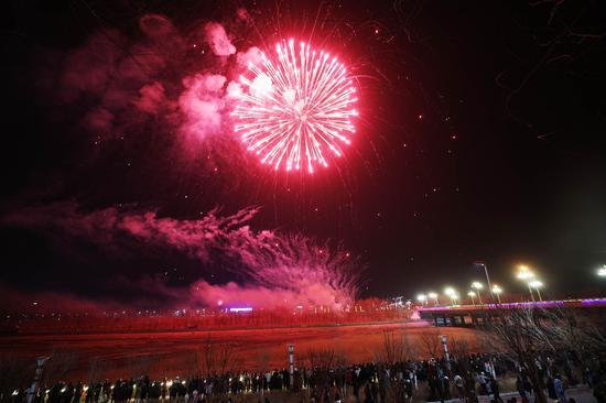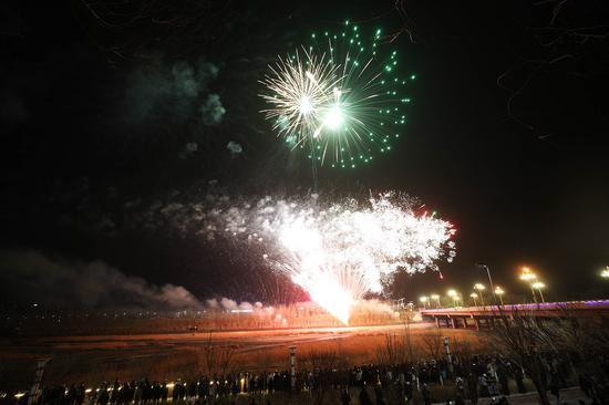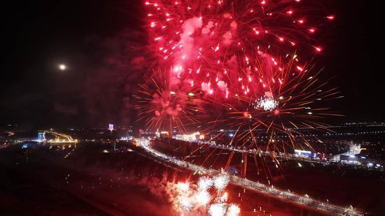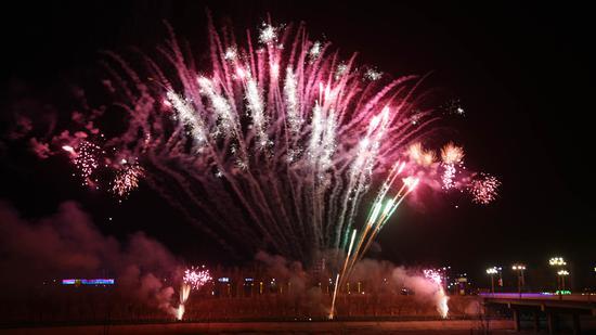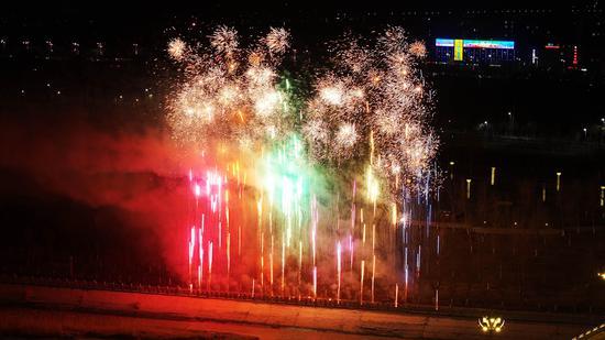 2月13日晚,新疆托克逊县城区白杨河畔一场盛大的夜光盛宴在此精彩上演,千架无人机和非遗烟花表演交相辉映,将夜空装点得如梦如幻,吸引了众多群众前往观赏。