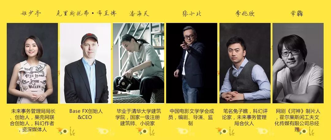 其中,未来事务管理局局长姬少亭担纲论坛主持人,5位重磅嘉宾分别是:网剧《河神》制片人、霍尔果斯闲工夫文化传媒有限公司总经理常犇;Base FX创始人&CEO克里斯托弗·布兰博;毕业于清华大学建筑学院,国家一级注册建筑师、小说家、编剧潘海天;中国电影文学学会成员,编剧、导演、监制张小北;笔名兔子瞧,科幻评论家,未来事务管理局合伙人李兆欣。