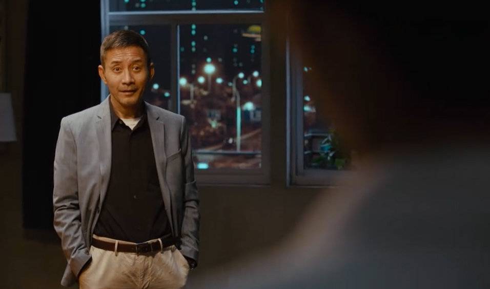 这一段对话中,镜头始终在庄文杰、廖老板和丁生火间来回切换,屏幕中时空交错,拉满紧张与爽感,如同《邪不压正》中姜文与廖凡在西餐厅那场走马灯似的交锋。