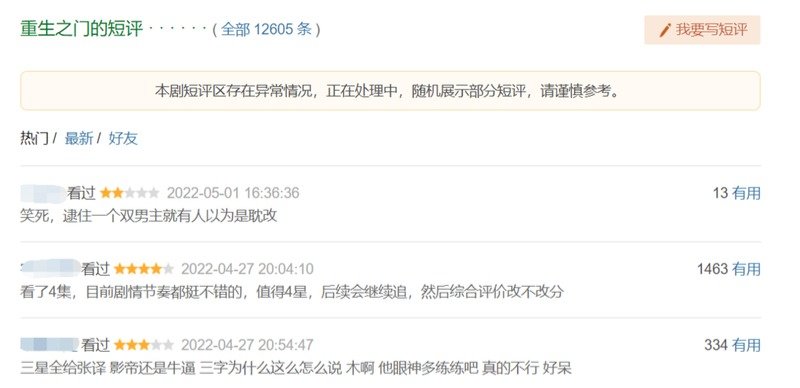 这一天,《重生之门》的豆瓣短评区多了一行小字,这意味着,它触动了豆瓣的“防水军控评”功能。