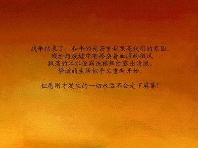 有些必须解决的事情,我们别无选择,当一头遍身淌血但昂首挺胸的雄狮吧!和你的战友一起痛击侵略者,保卫中国!”