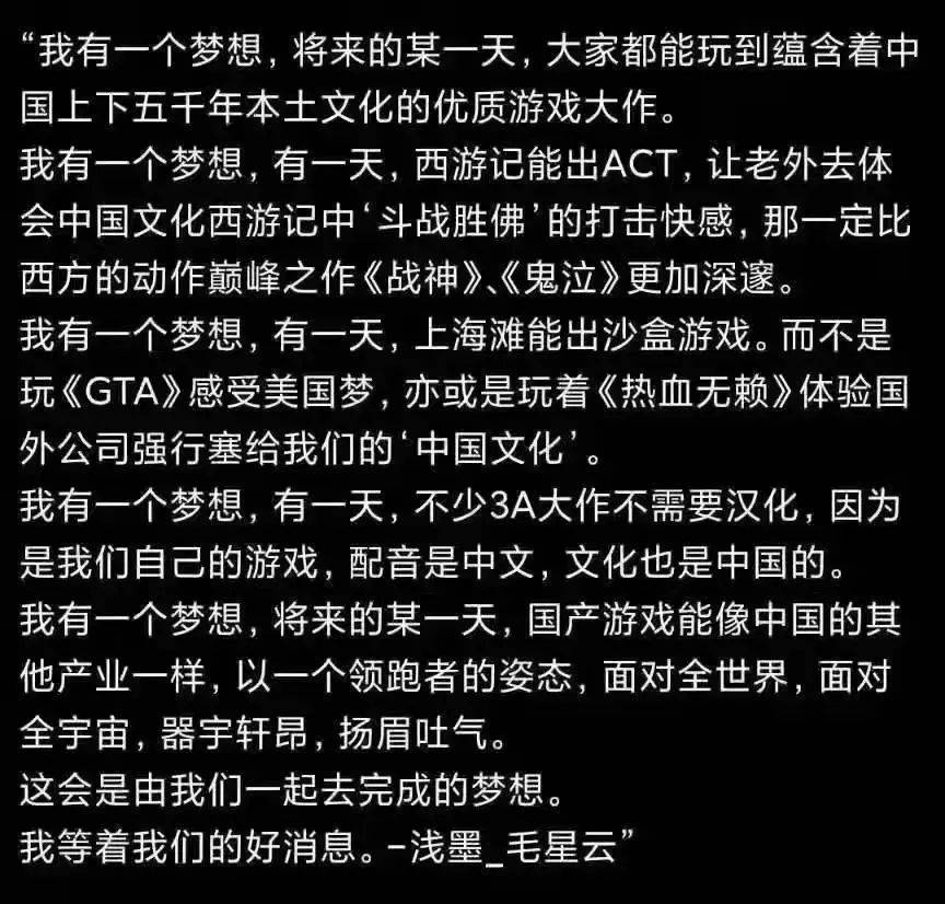 我原来也不了解他,但看到他的愿景,还是有点唏嘘的:这其实就是我们一代又一代中国玩家的心愿。