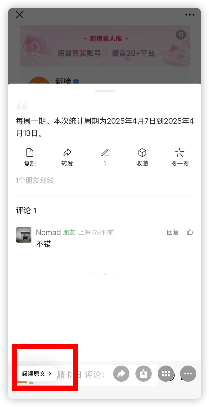 而且当这些评论被截图发到聊天里,其他用户点开截图后右下角会自动出现“阅读原文”按钮,不需要再搜索账号和文章标题,便可一键直达原文页面,形成了内容闭环。