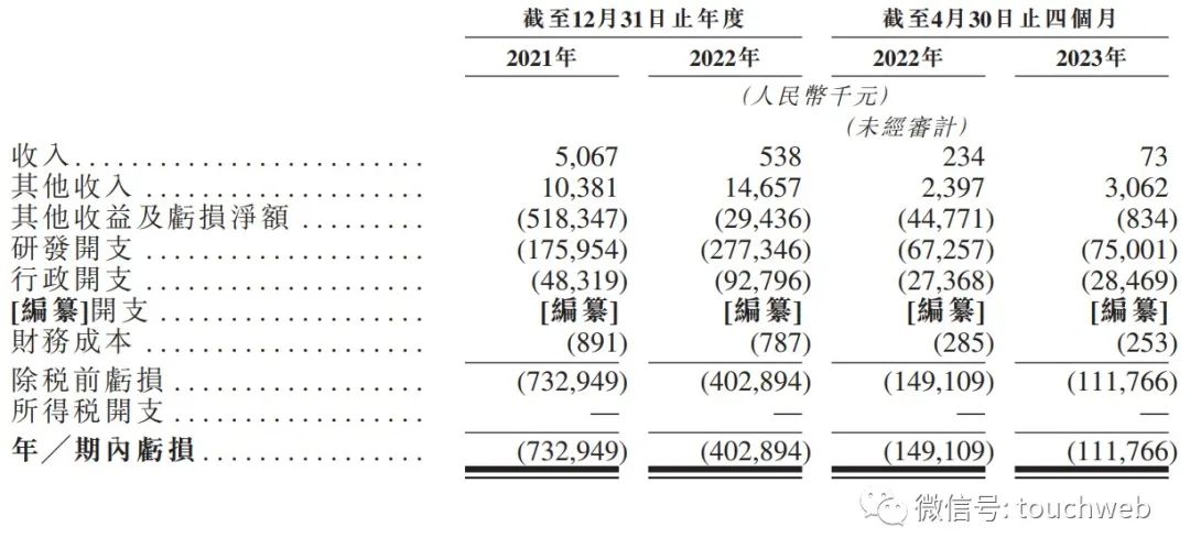 招股书显示,昂科生物2021年、2022年营收分别为507万元、53.8万元;年内亏损分别为7.33亿元、4.03亿元。