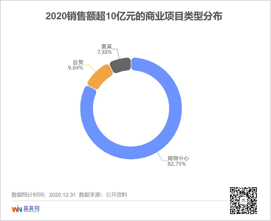从项目类型来看,购物中心仍是吸金力较强的项目,超八成购物中心的销售额超10亿,百货、奥莱项目则抢占小部分的市场份额。