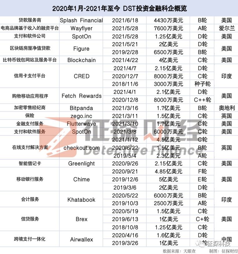 DST投资金融科企概览 雨橙制图
