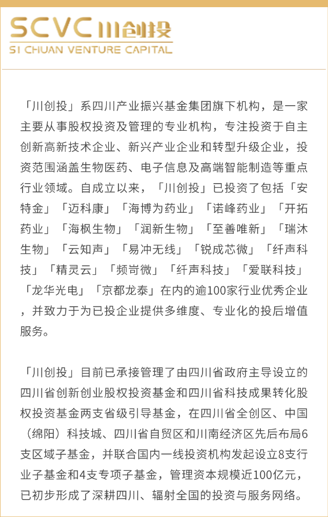 6月8日,由四川产业振兴发展投资基金有限公司、中国民生银行股份有限公司成都分行主办,四川创新发展投资管理有限公司承办,成都特威麟企业管理有限公司协办的2023金沙汇“细胞与基因治疗”专项活动暨民生银行“易成长·创未来”系列活动在四川振兴(高新)双创基地成功举办,四川振兴集团党委委员、副总经理杨旭,民生银行成都分行党委委员、行长助理陈涛,川创投董事长王文忠,四川合纵药易购医药股份有限公司副董事长、总裁,中国医药物资协会MAH分会会长陈顺军,四川省投资基金业协会副会长兼秘书长贾登琼,四川创新发展投资管理有限公司总经理助理陈国军,四川大学生物治疗国家重点实验室教授、成都岷山细胞工程技术研究院院长杨寒朔,维瑾生物联合创始人胡怀忠,甄育资本合伙人刘冰,道远资本投资副总监李偲,盛信律师事务所香港办公室合伙人高屹,盛信律师事务所律师郭泰阳等以及多名生物科技医药公司代表应邀出席。