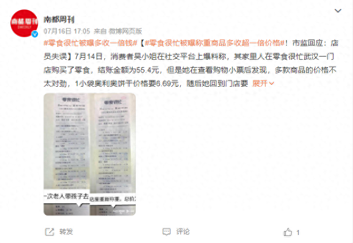 当地市场监督管理局调查后向“南都·湾财社”表示,重量误差均为0.115kg,是门店店员不小心将其他东西放在秤上导致的失误,已经要求涉事门店进行内部管理,杜绝此类事情发生。但是对于这件事,零食很忙方面暂时没有回复。
