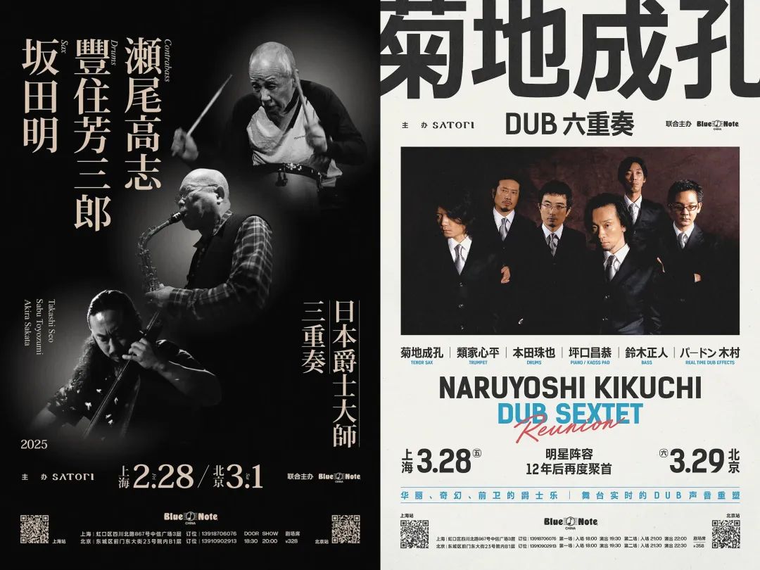 在诸多的主办方中也不乏垂类的演出主办方,譬如,奇幻、前卫的菊地成孔DUB六重奏和坂田明、丰住芳三郎、濑尾高志三位日本爵士大师的三重奏,就是由热爱日本爵士的SATORI主办、爵士俱乐部Blue Note联合主办,在京沪双城的Blue Note场地举办。