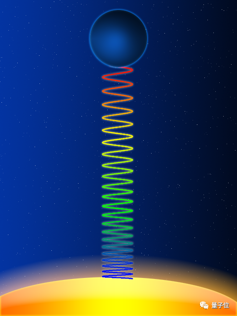 如果一束蓝光射向天空,在引力的作用下,就会向红色端移动,称之为“引力红移”。