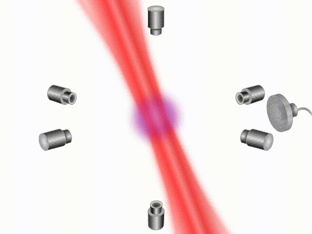 这套系统先用6束激光将10万个锶原子逐步冷却,最后用红外激光将锶原子维持在超冷状态。