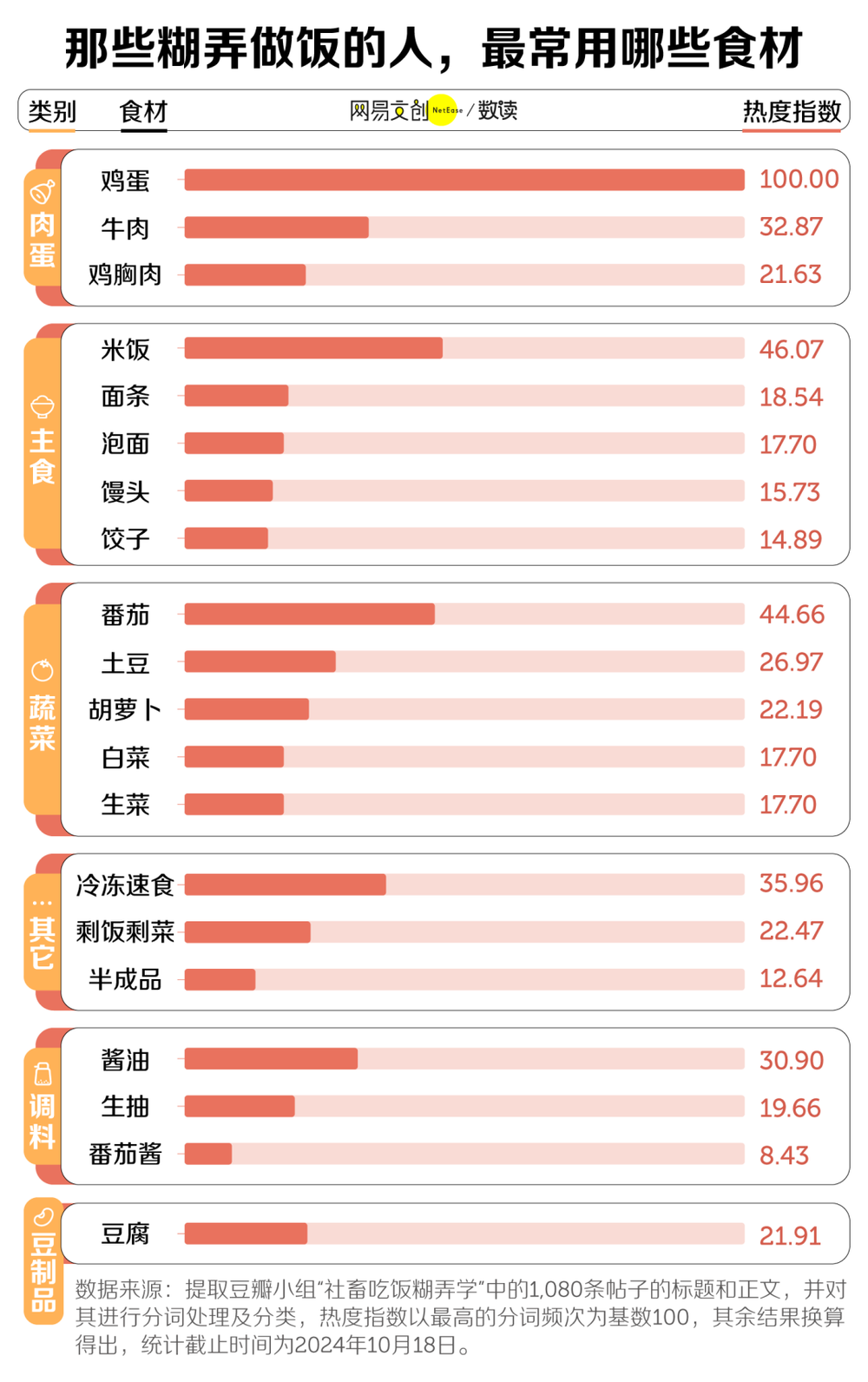 根据对小组内所有帖子标题和正文的统计,我们发现践行“极简思维”,从糊弄派们最常用到的食材便可见一斑。