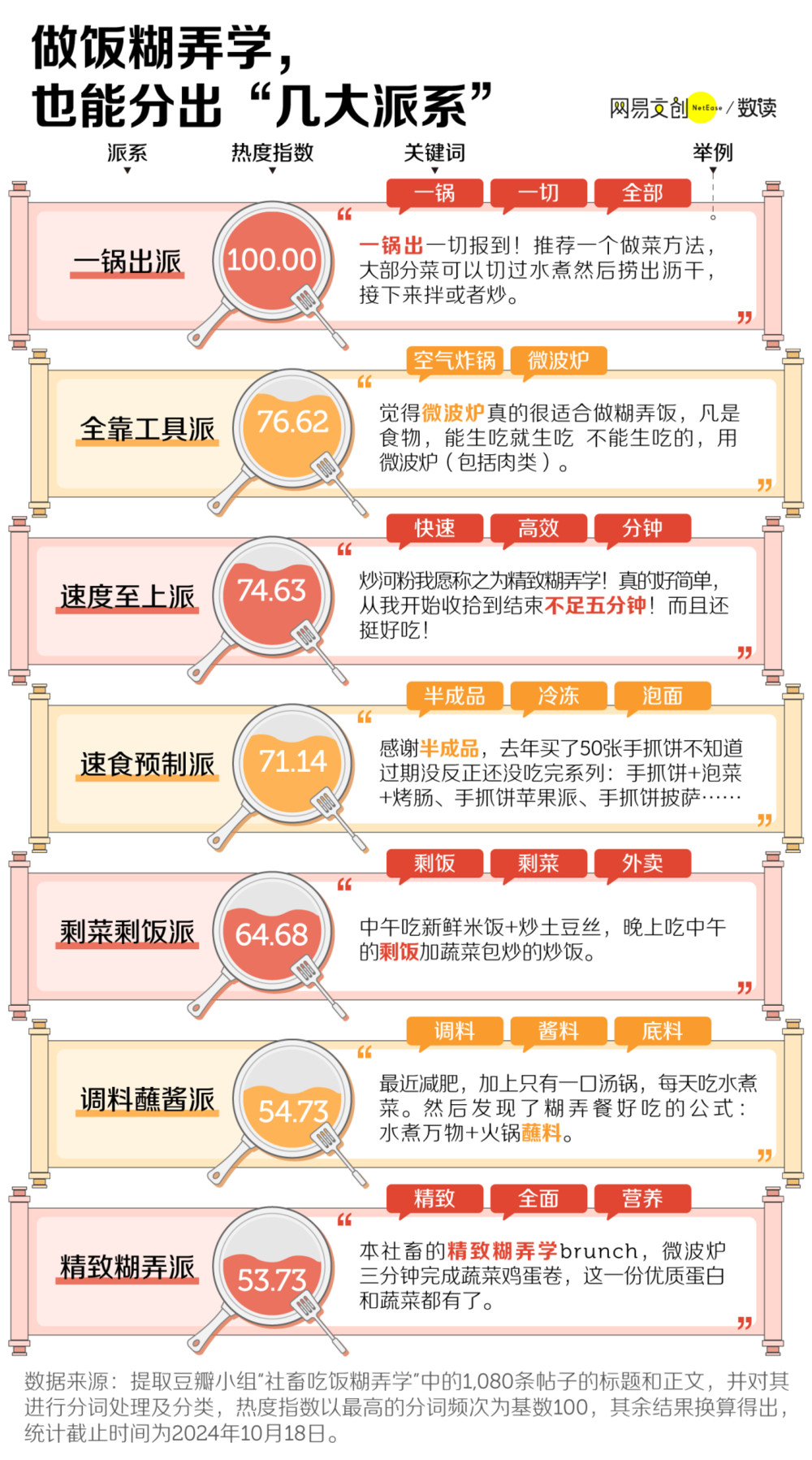 除了多洗一个碗都能瞬间破防的“一锅出派”、离开微波炉和空气炸锅就等于自毁厨艺的“全靠工具派”,还有主打最快时间填饱肚子,一秒也不浪费的“速度至上派”。