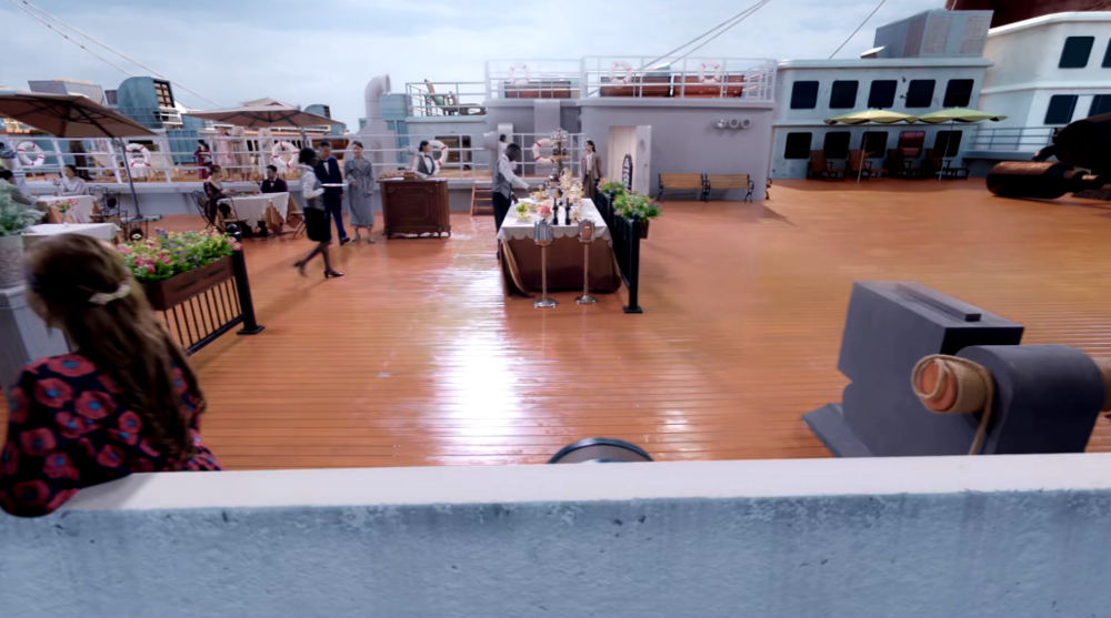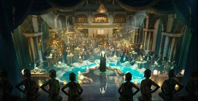 视效上。舞厅的场景融合了一些三四十年代百老汇的感觉。用了很多珍珠贝壳的元素,舞台是一个贝壳形成的水池。