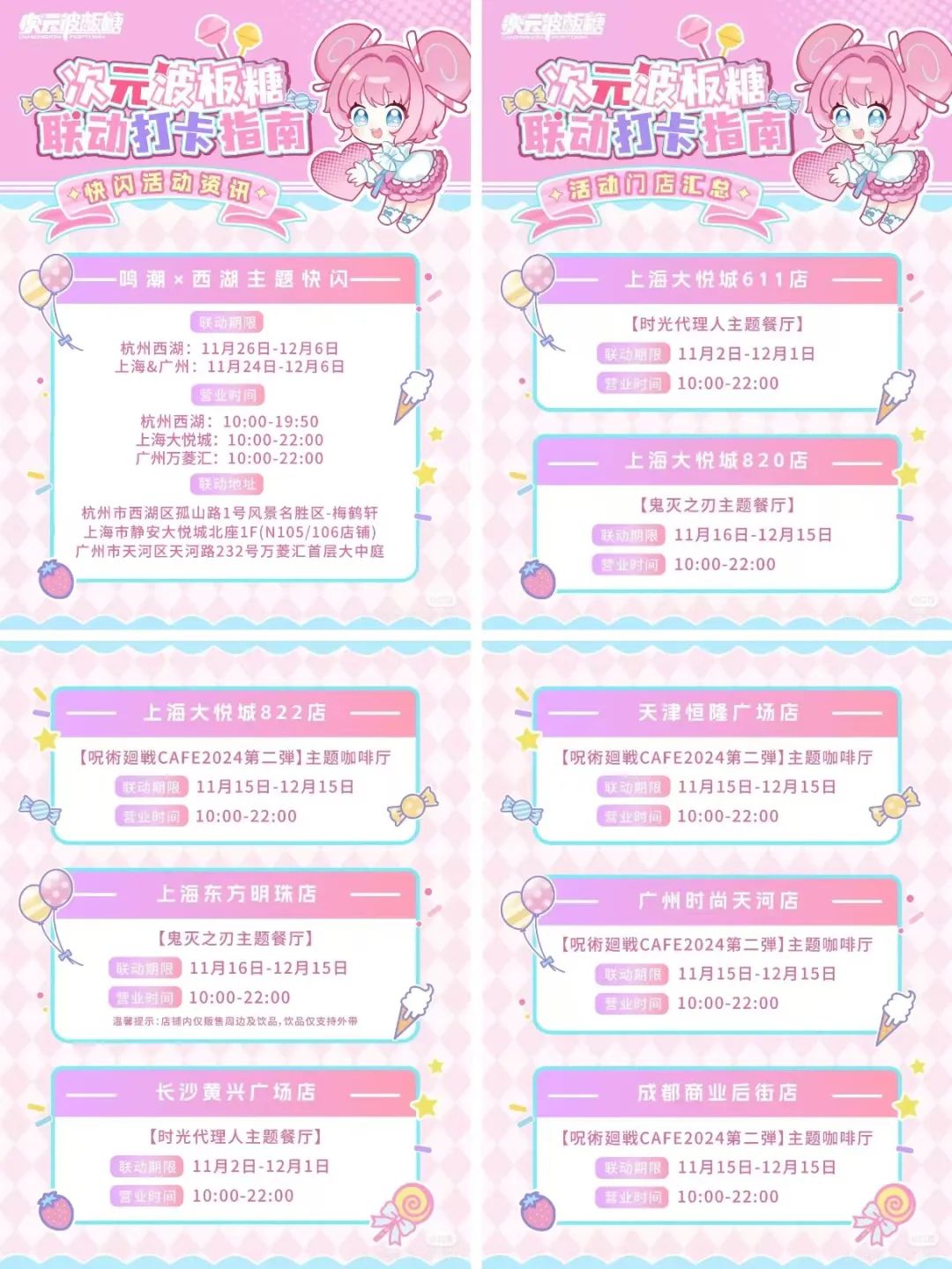 次元波板糖成立于2021年,是一家二次元IP运营公司,曾发起过成都龙湖滨江天街CHIIKAWA快闪、近期的鸣潮x西湖主题快闪等众多快闪项目,此外旗下还有二次元零售品牌“墟弥 GOODS”。