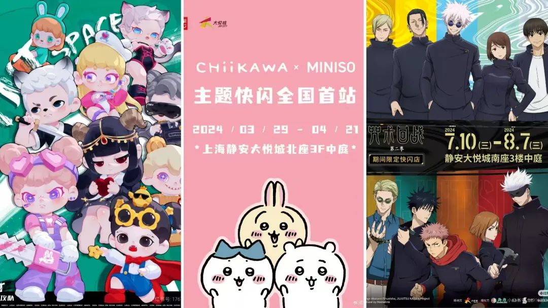 这样的成功并非只是个例,今年五一期间,新锐潮玩品牌TNTSPACE在成都IFS国际金融中心举办的“TNT特攻队”主题快闪5天销售额突破1000万元,一举打破国内潮玩快闪的销售纪录;暑期期间,上海静安大悦城举办的咒术回战期间限定快闪全国首站的销售额也突破700万元。
