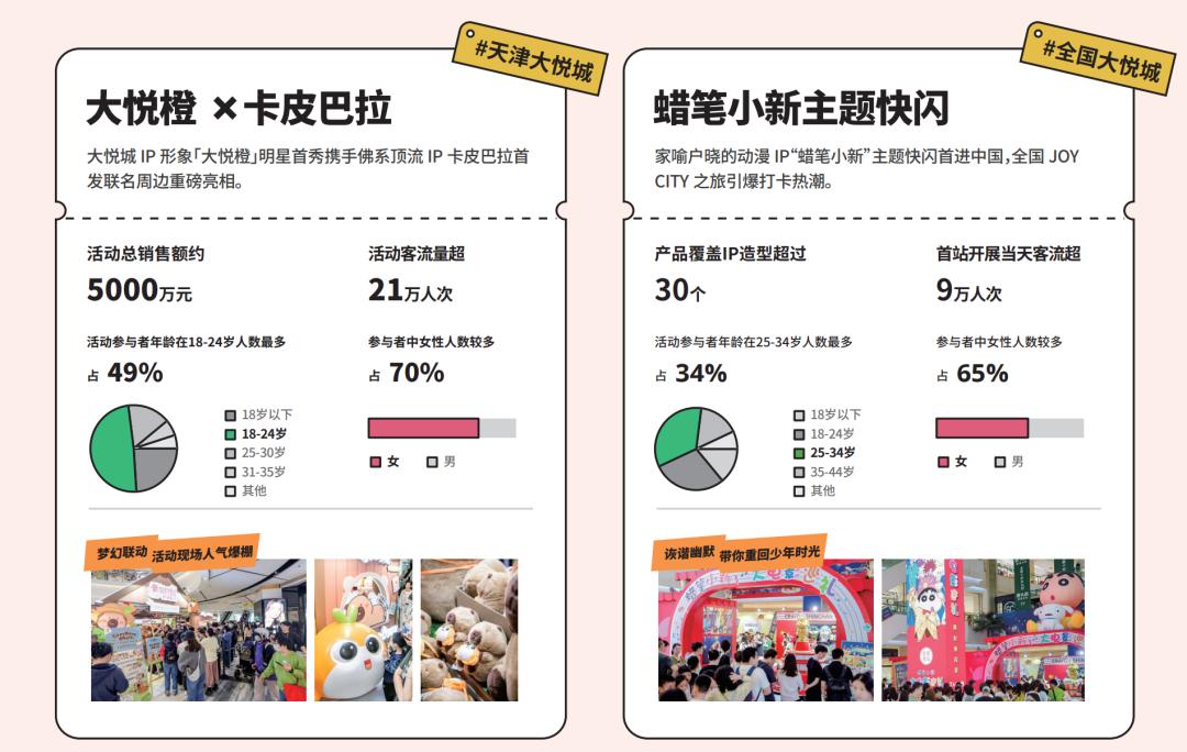 大悦城此前透露的相关数据就充分体现了这一点。例如,今年国庆期间,上海静安大悦城携手小红书二次元官方,打造了首个“次元旅人”化妆间,并推出“盗墓笔记上海快闪”、“魔道祖师动画云深梦绕限定快闪”、“光与夜之恋x线条小狗线条大作战主题快闪”、“芙莉莲期间限定快闪”、“遇见EVA全国首展”等多个二次元快闪活动,吸引了大量年轻客群,七天快闪活动总销售并不算多,仅在1000万元左右。但是,由此带来的国庆商场总销售额却近6500万元,同比提升约20%;国庆期间总客流也突破70万人次,同比增长超28.5%。