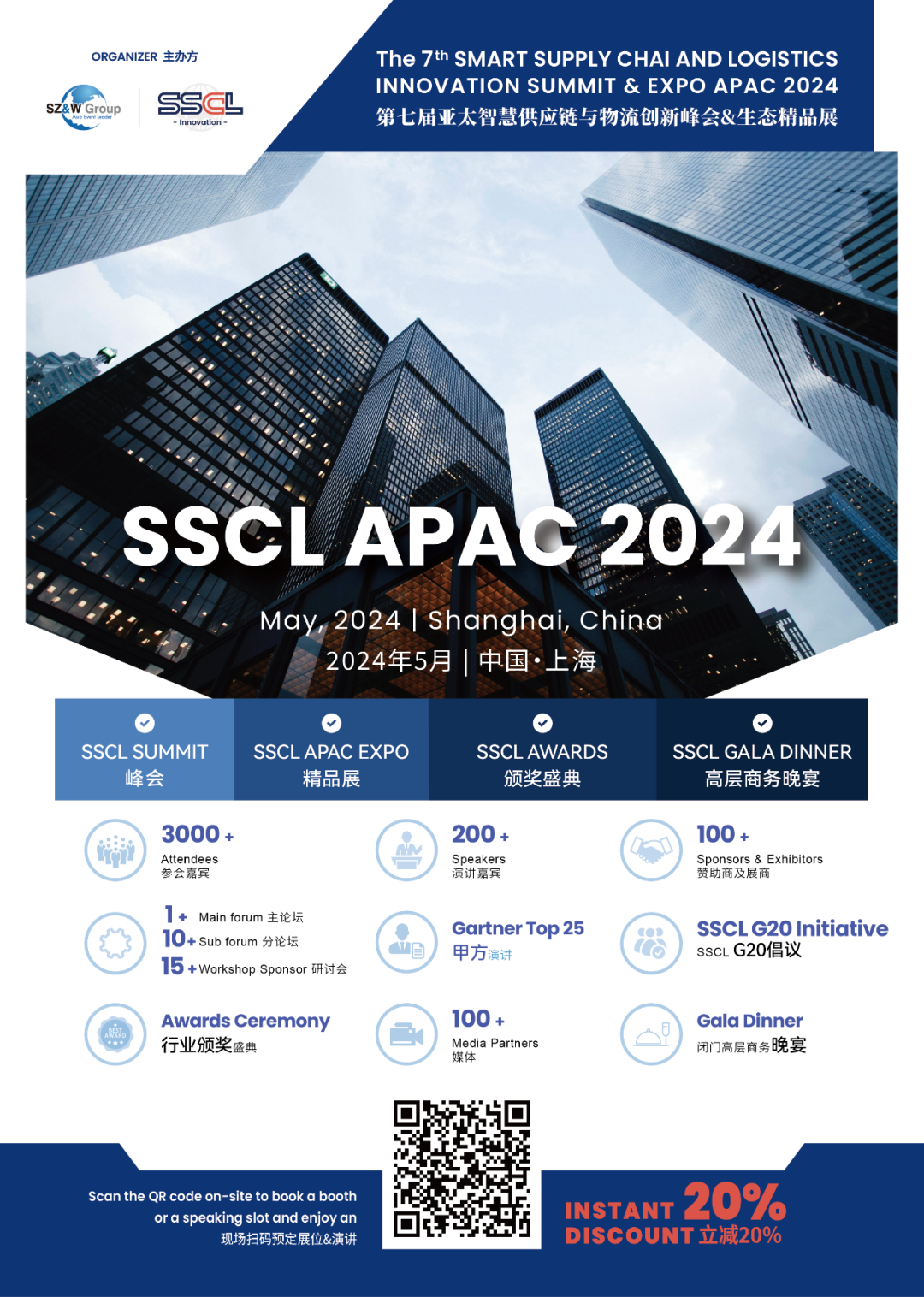 扫描二维码报名预定演讲、展位立减20%!