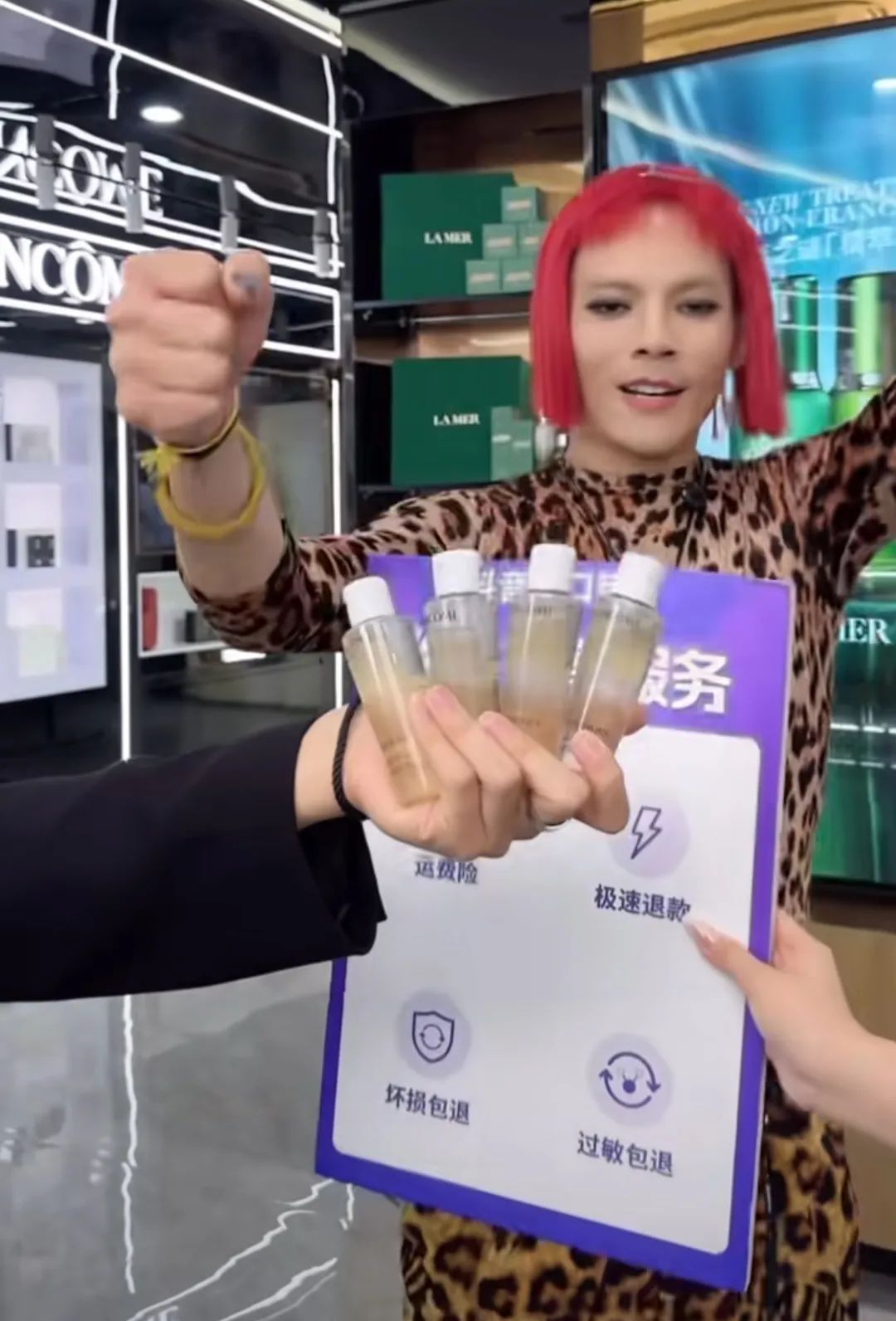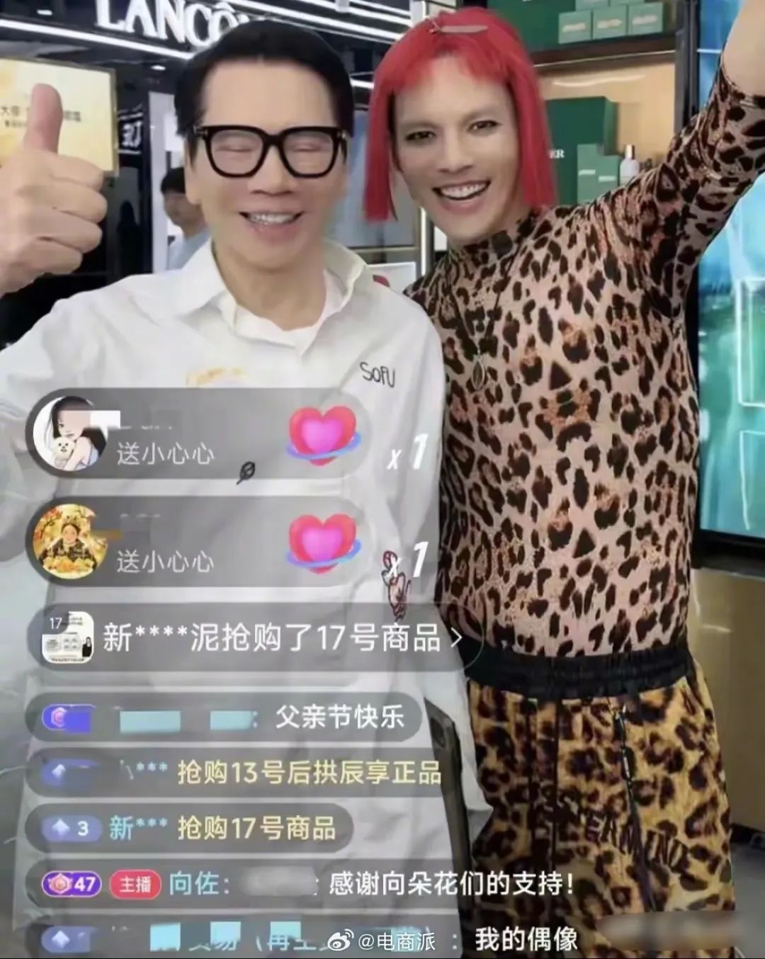 向佐穿豹纹化浓妆,与向华强合体直播