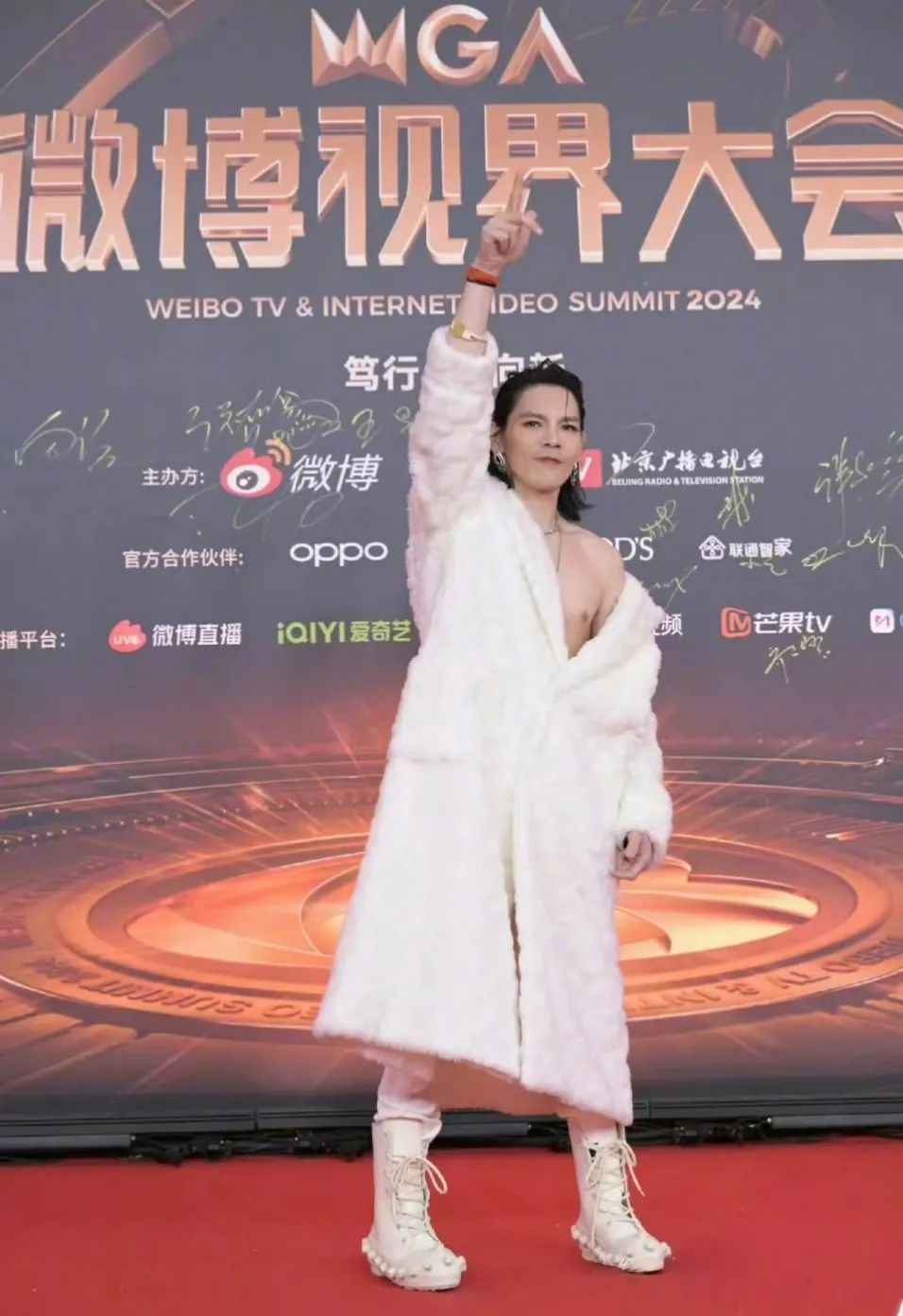去年11月5日,向佐穿着一身深v露背白色皮草走上红毯。还主动认领,自己是临时跟妈妈向太借了件衣服穿。