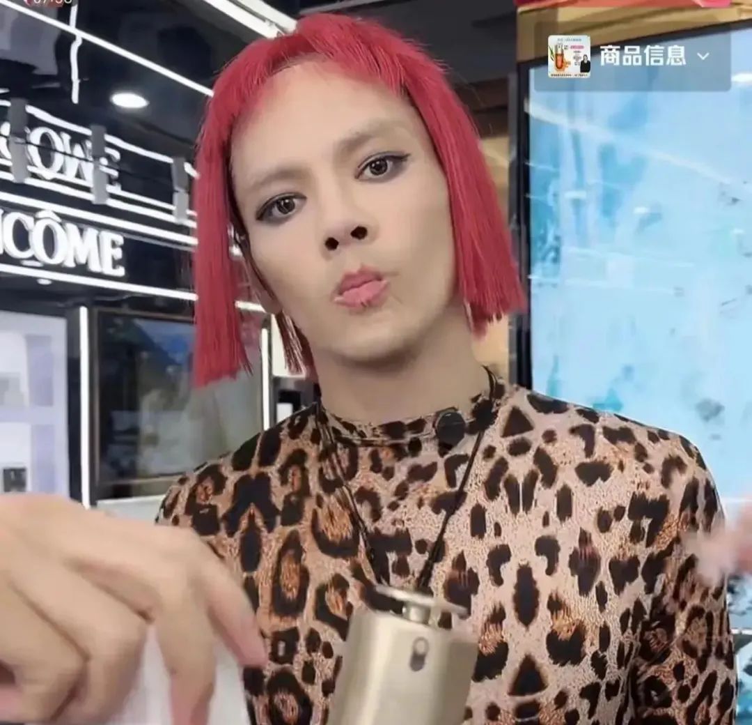 只见直播间里,向佐穿着一身夸张的豹纹服装,头戴一顶鲜艳的粉红色假发套,看上去十分惹眼。