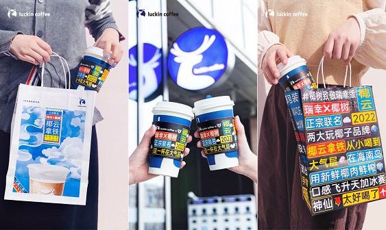 今年4月,瑞幸和椰树牌椰汁又来了一波联名营销。推出椰云拿铁当天,咖啡隔热套被设计成了椰树的风格,配合“椰云拿铁,从小喝到大气层”“口感飞升天,加冰赛神仙”等文案,引得消费者纷纷打卡,首发当日便卖出66万杯。