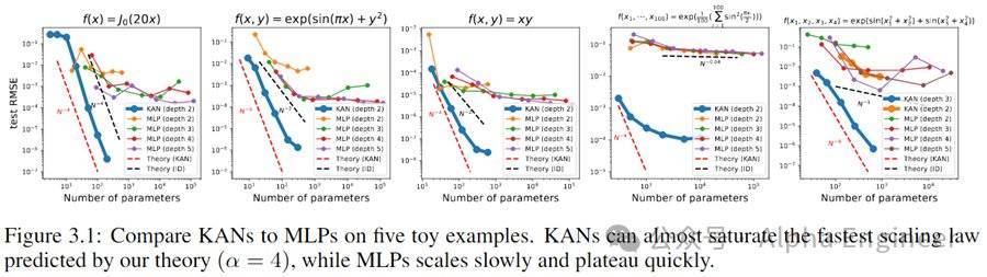 首先,对于Symbolic Formula来说,KAN的Scaling效率比MLP高了不少。