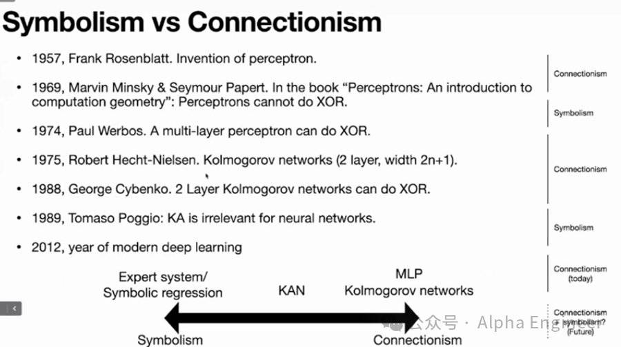 可以说,KAN是一个处于Symbolism和Connectionism之间的存在,有可能成为连接符号主义和连接主义之间的桥梁。