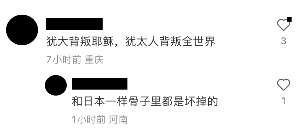 关于言论的烈度,你去翻翻以色列驻华大使馆以及相关内容的评论区,就能看见各种令人恐惧的地狱笑话,由于过于丑陋,我们就不展示了。