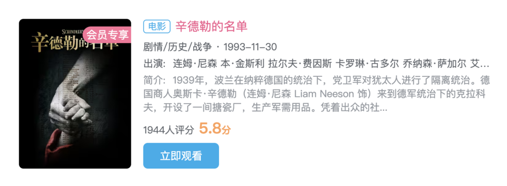 于是《辛德勒的名单》在B站被刷低分,一度跌至5分以下。豆瓣电影也多了不少新差评,导演斯皮尔伯格的犹太人身份尤为刺眼。