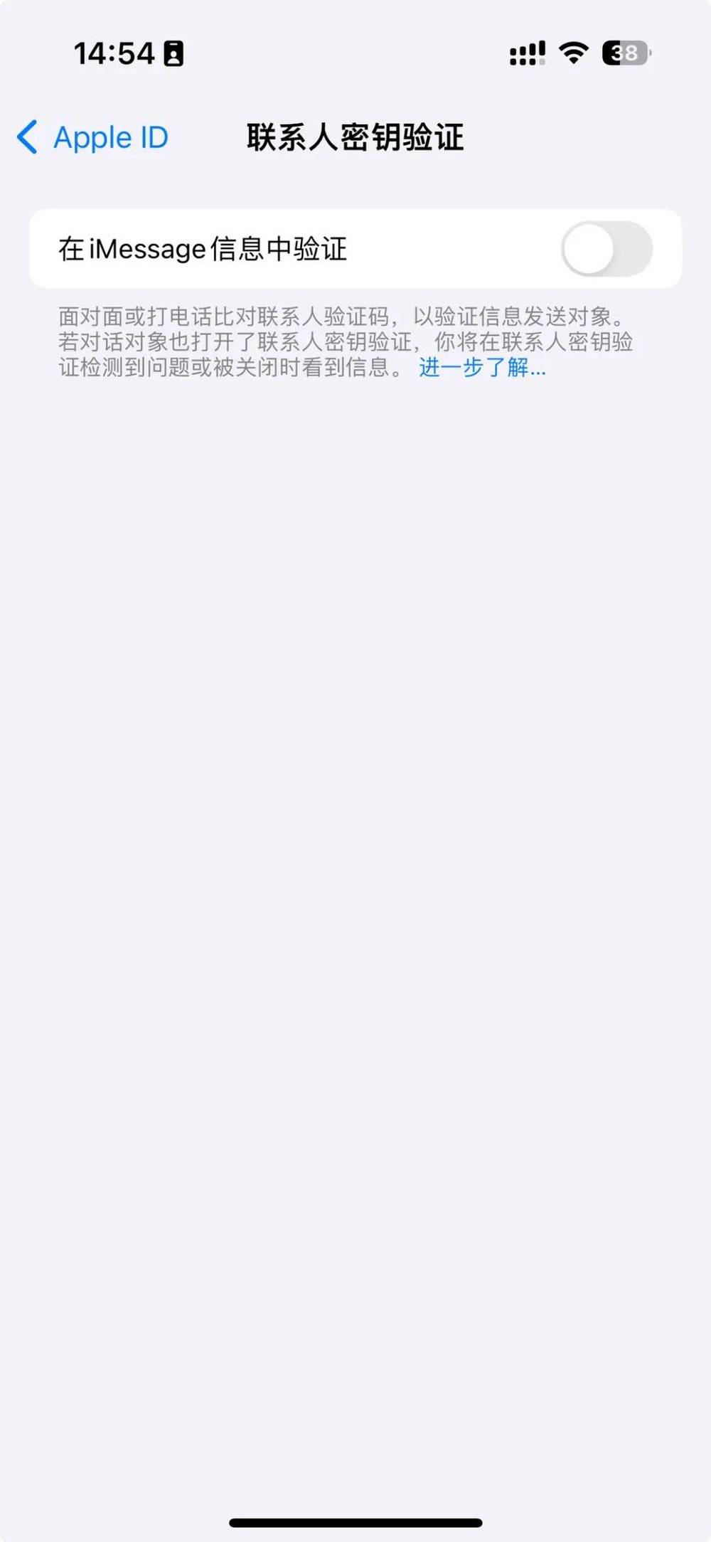 Apple 在 iOS 17.2 还正式推出了联系人密钥验证的功能,这个功能需要在“设置”>“Apple ID”中进行启用,启用后 iMessage 会在双方进行信息发送时提醒入侵、监视等突发情况,并且可以让用户通过与对方核对设置中的公共验证码来进行交叉核实,确保交流的对方确实为本人。