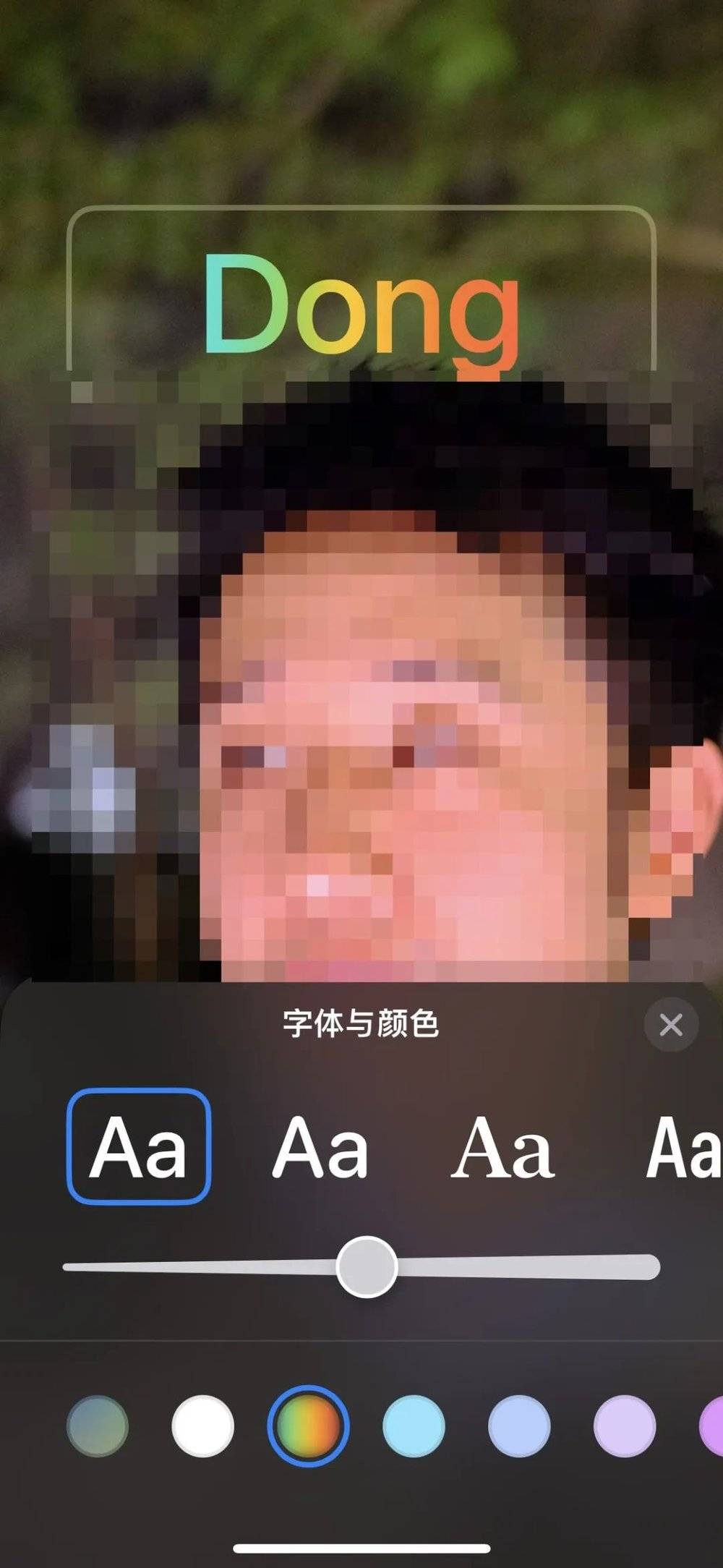 在设置联系人海报的时候,我们可以为联系人姓名挑选不同的配色。在 iOS 17.2 中,Apple 为联系人姓名的文本新增了一个彩虹色的选项。