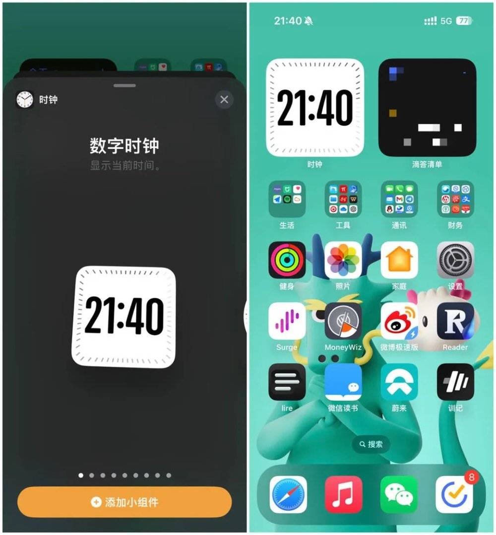 时钟应用也新增了一个“数字时钟”的桌面小组件,直接以数字的形式来显示当前的时间,整体是一个白底黑字的风格。