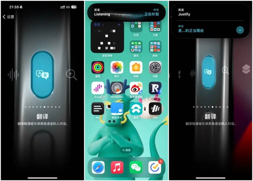 iPhone 15 Pro 和 iPhone 15 Pro Max 机型专属的操作按钮也迎来了升级,在原先的选项基础上,Apple 新增了一个“翻译”选项,可以通过操作按钮在灵动岛上直接调用翻译功能,在出国旅游、外语学习等场景下会非常实用。