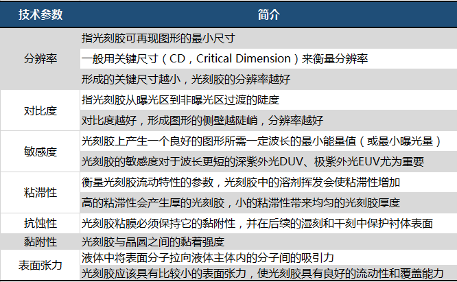 光刻胶的性能主要是由其分辨率、对比度、敏感度、粘滞性、粘附性和抗蚀性综合决定的,每一指标都对应光刻胶的所属性质。