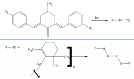 图1.6 KTFR光刻胶双叠氮结构及与环化聚异戊二烯交联