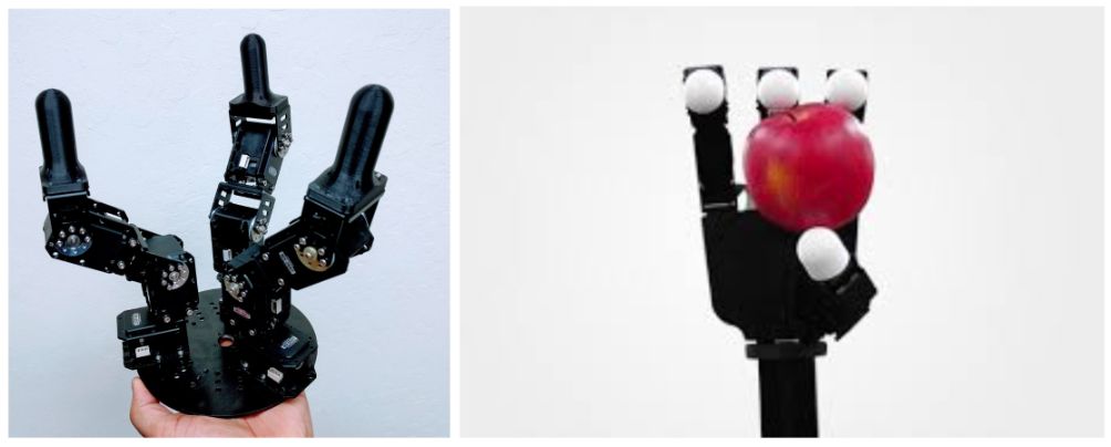 左图:三指机械手 Dynamixel Claw。右图:Allegro 机械手。