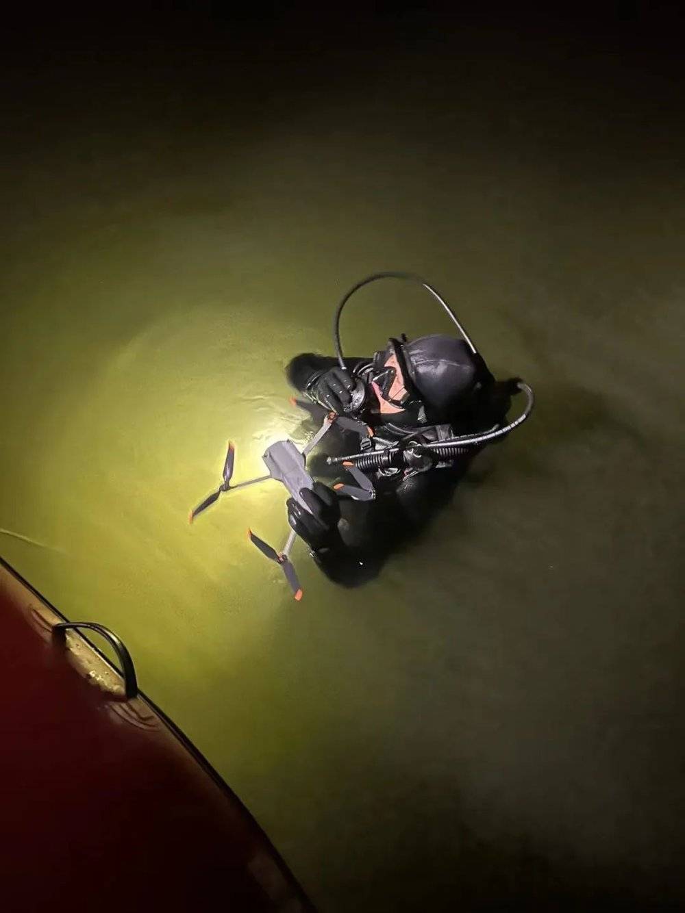 就这么一直走下来,走了这么多年。后来我们考虑光用钩子也不现实,我说咱们要做有技术的救援。技术性救援怎么搞?于是就开始了,必须要有潜水的。你潜水,要有钱吧?首先你得学,你要有装备。比如说水肺潜水,要有气罐,要有咬嘴,要有你那些脚蹼,乱七八糟的。你要学这些东西。当时也就是2021年前后,我手里有点钱,安排了几个兄弟去海南,专门去学潜水。学完潜水就是回来服务这个的。