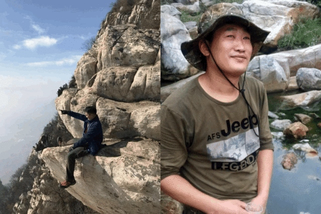 这个地方我们当地叫通天洞。几个大石头,中间就这么大概是1米左右的一个洞,只能走这个洞里边下去,垂直的,这是唯一的一条路。于是需要我们所有的兄弟们,就是领队,利用绳索把一个一个的人安全地送下去。保护着,一个人一个人过。然后一个女孩着急着找厕所,她反正着急,然后从那个地方想着自己下去,结果她直接就摔下去了。摔下去之后,当时我真是……手机没信号,你说怎么办?