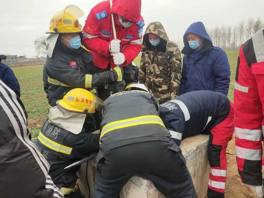 ■图/冬天在耕地里的竖井上实施救援,一老人投井自杀,救上来后生还