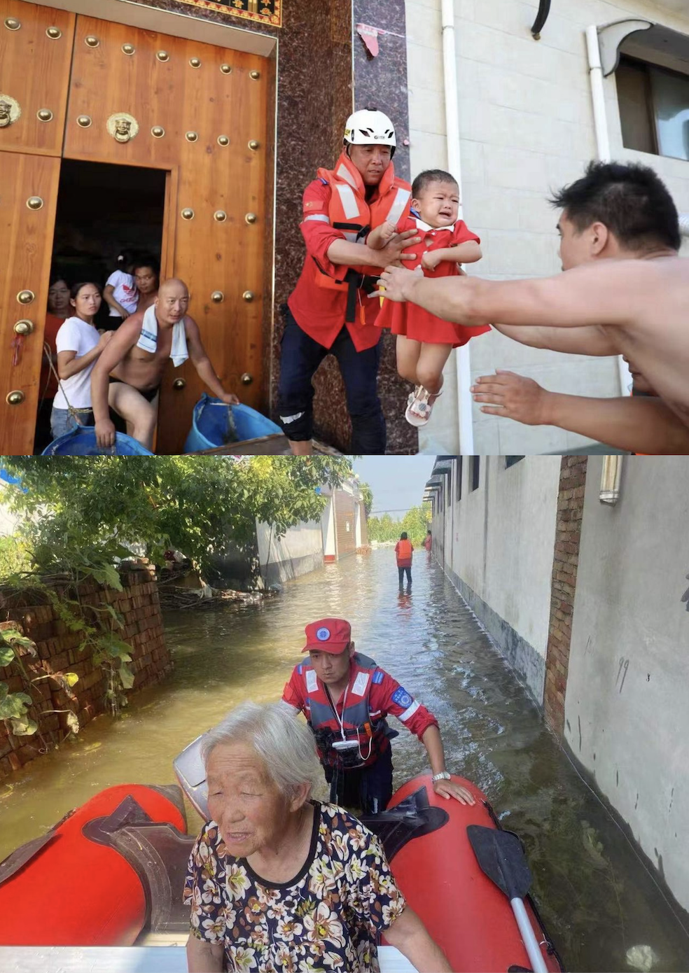 ■图/河南7·20特大暴雨灾害期间,何邵舟和队员在新乡市辉县境内救助受困老百姓