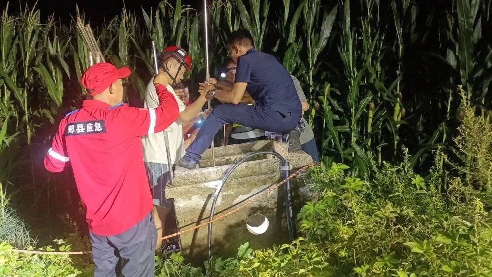 ■图/夜里在玉米地里的竖井上实施救援,落井人已经没有生命体征
