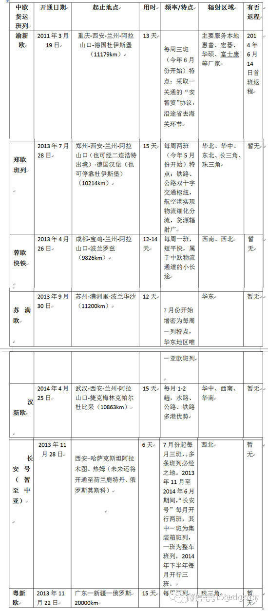 附表1:现行中欧货运班列