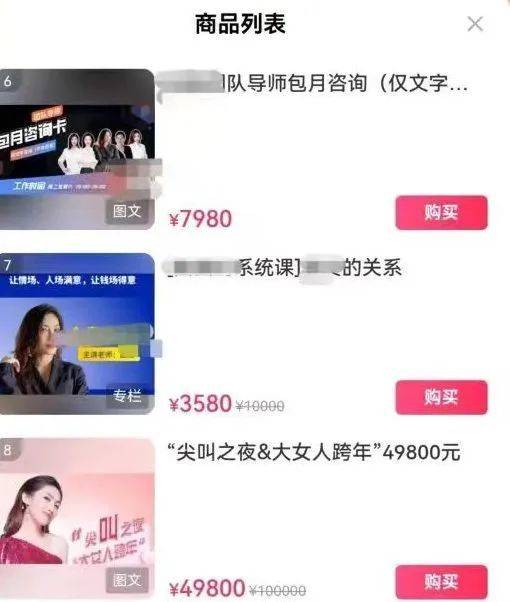 某情感博主直播间课程价格