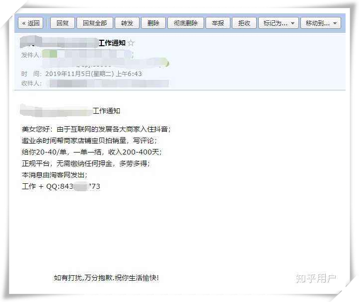 真正有实力的公司会直接屏蔽掉QQ邮箱发出的邮件。