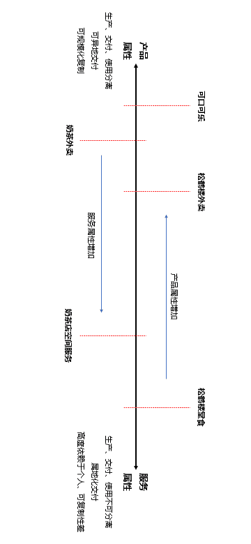 我们认为100%产品属性/服务属性的产品是不存在的,更多是一种混合状态,即产品同时拥有产品属性和服务属性,只是比例各有不同。如可口可乐这么标准化的产品,用户也需要便利店的服务才能买得到,而这些服务是由品牌买单的。